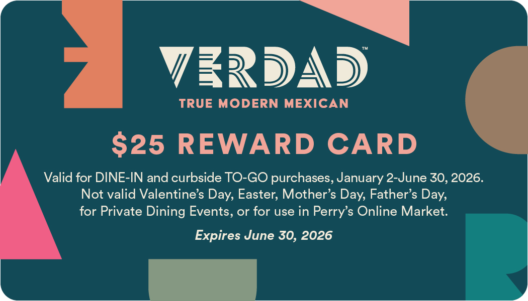 Part of Perry's renowned family of restaurants, VERDAD brings True Modern Mexican to life… with the highest quality ingredients, an inspired décor, attention to every detail and every bite… for a truly vibrant, artisanal dining experience.